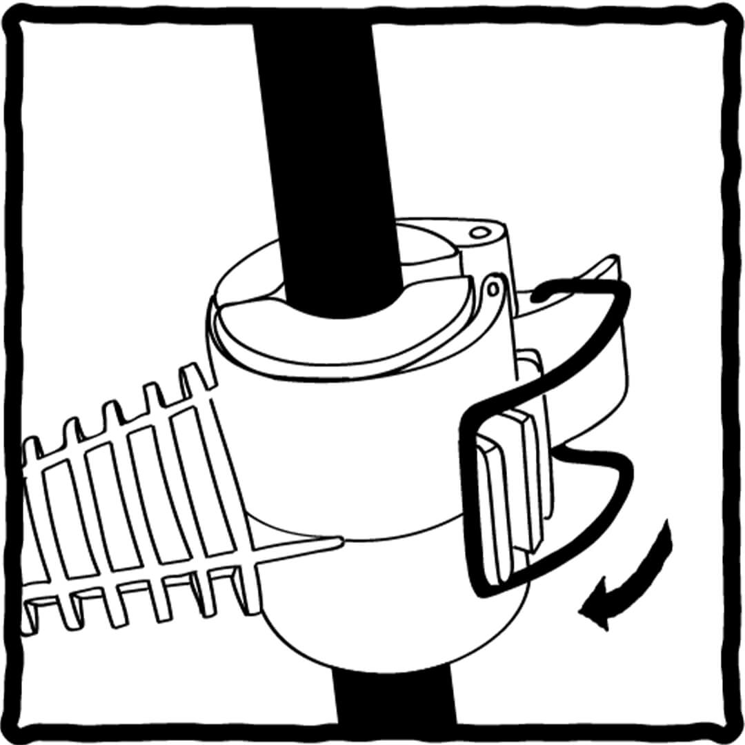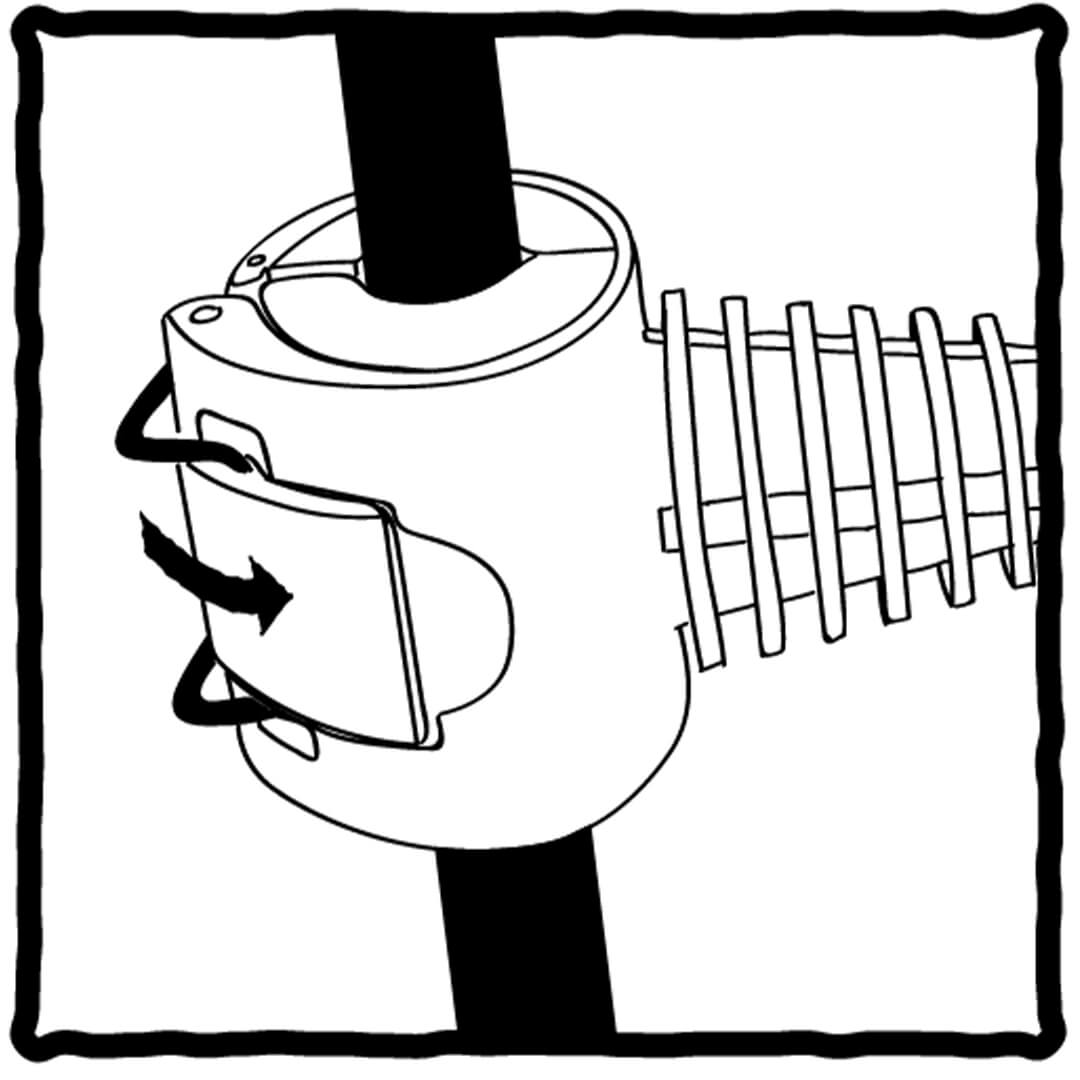 Draai naar recht om de klem te bevestigen aan de houder