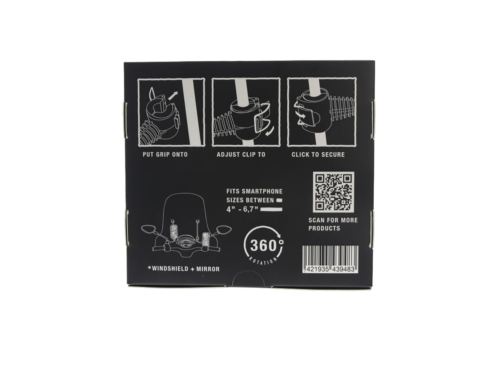 Plaats de klem op de beugel van je windscherm of spiegel