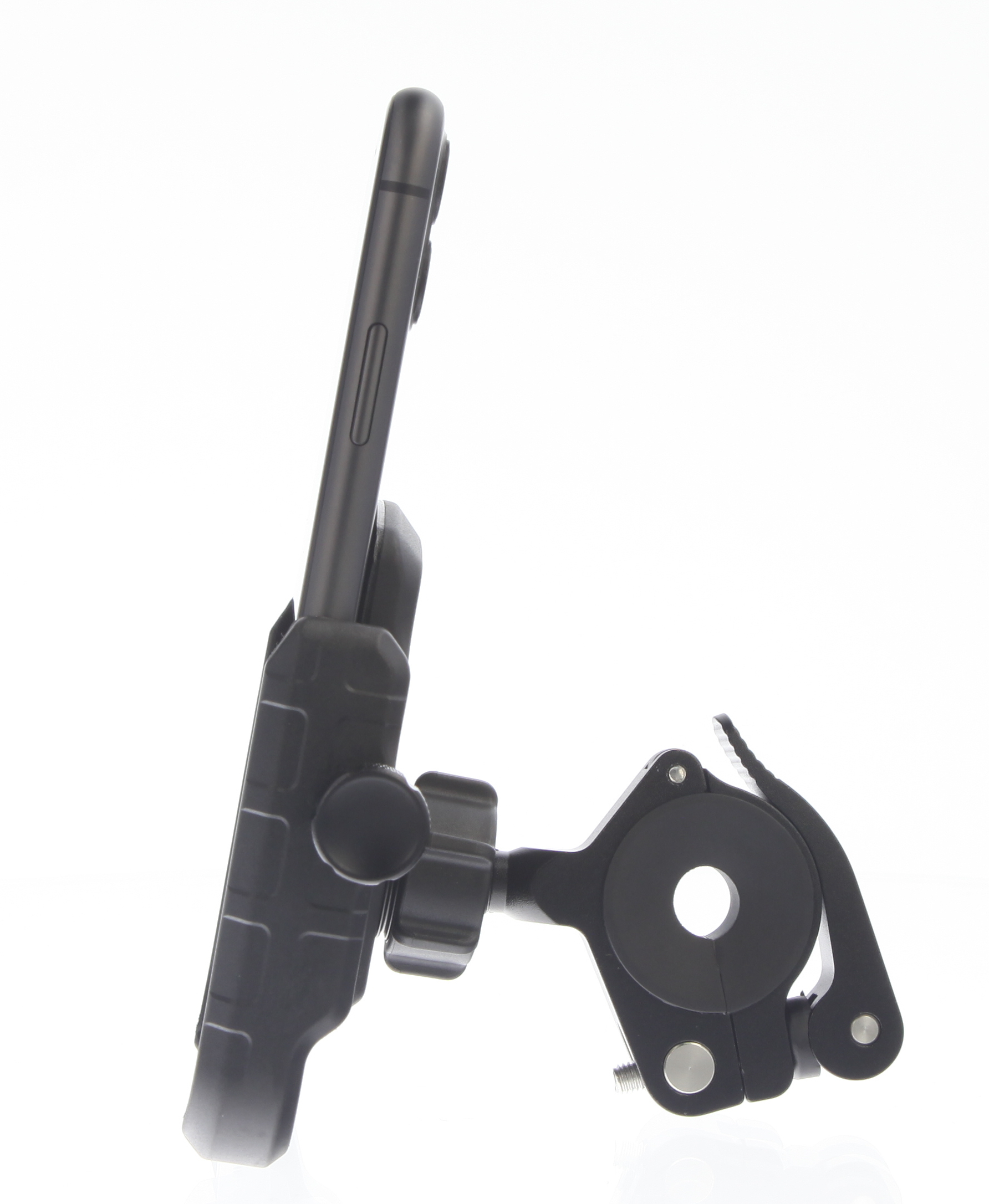 De klem kan op meerdere standen stevig vastgezet worden zodat de houder goed en veilig op zijn plek blijft zitten.