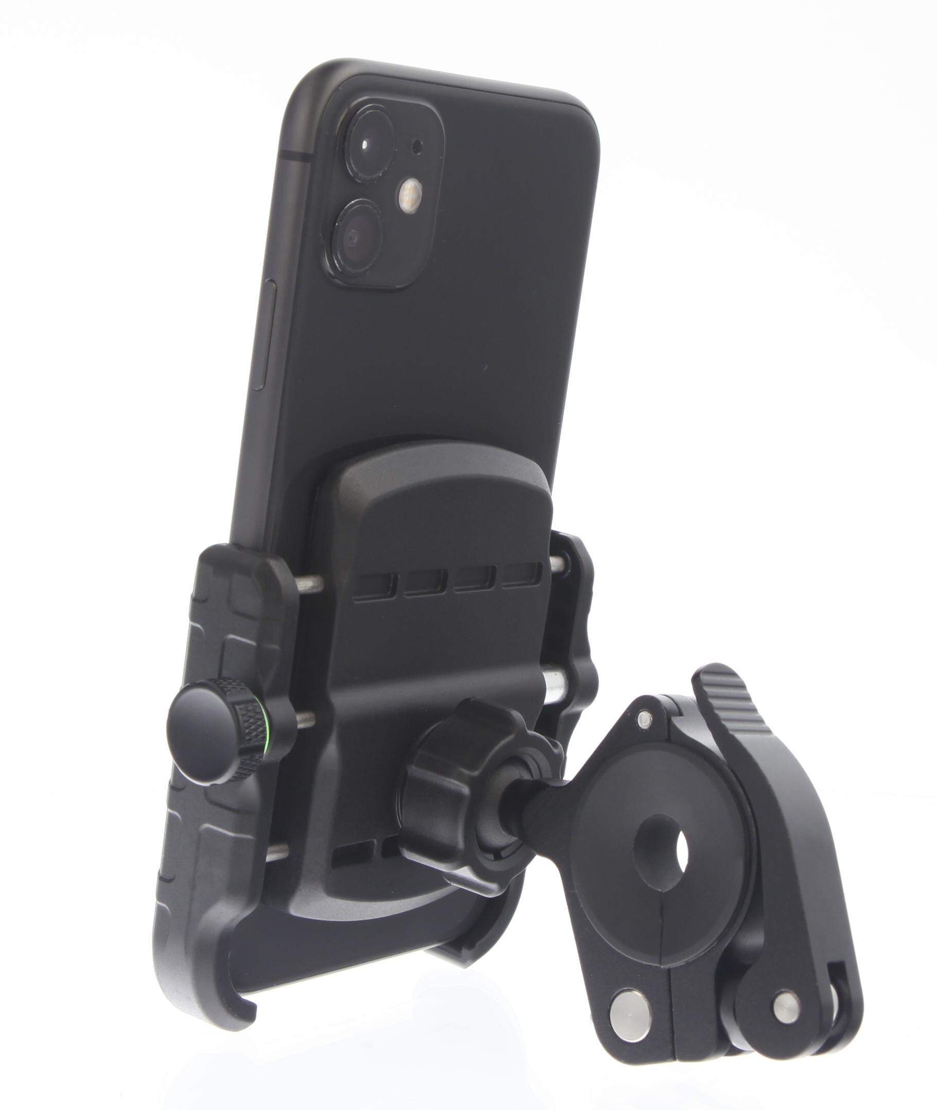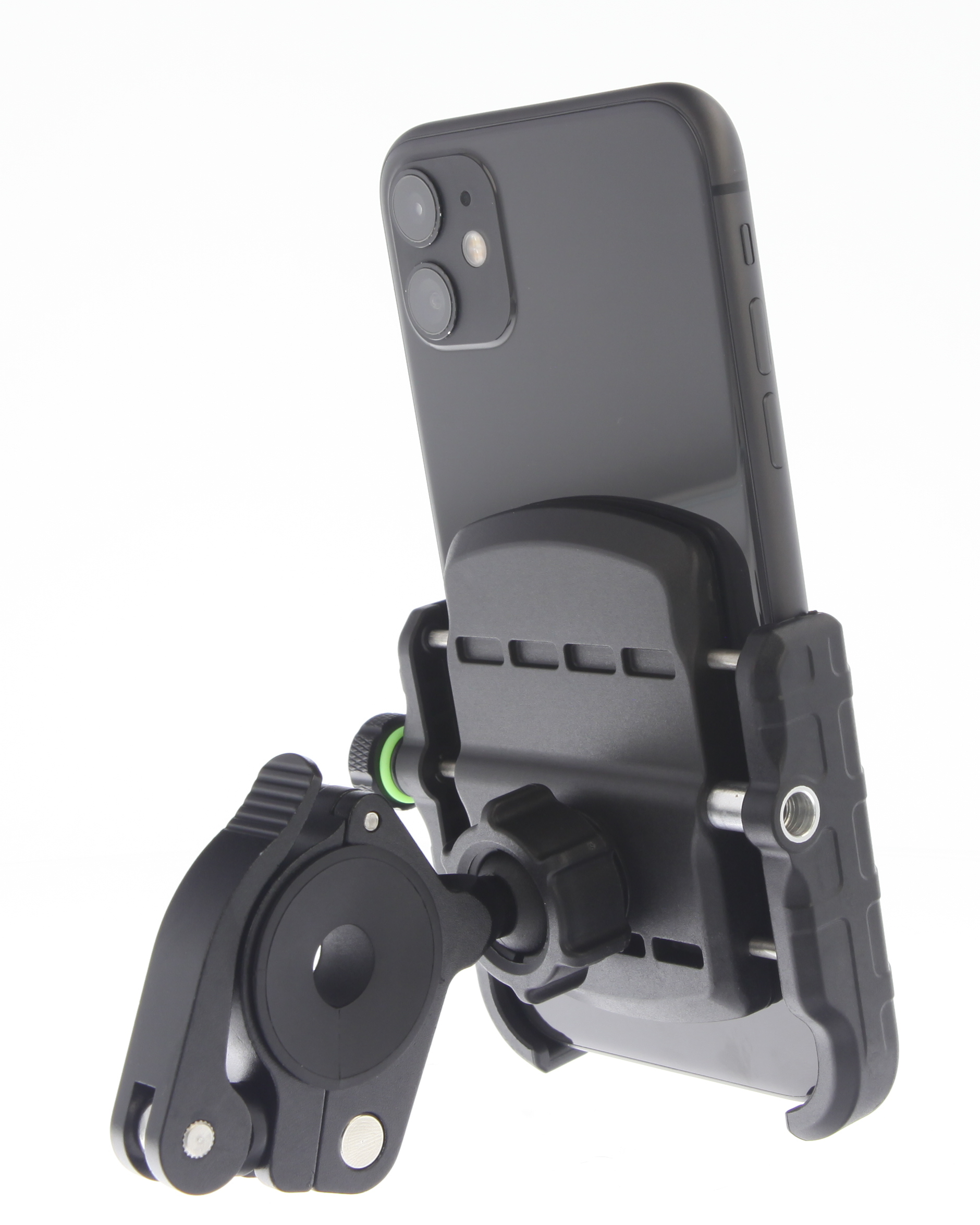 De houder is voorzien van een kogelscharnier wat ervoor zorgt dat je de telefoon tot 360° graden kan draaien.