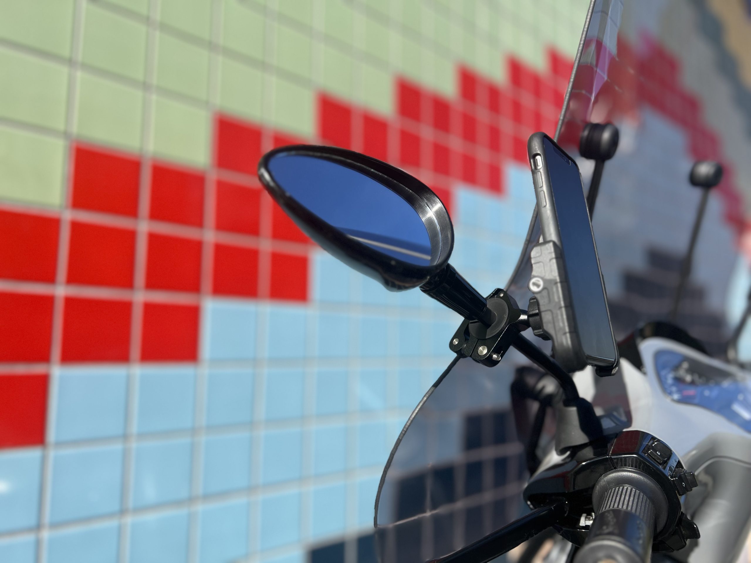 De bevestigingen kun je plaatsen op je windscherm, spiegel en/of stuur van je motor of fiets.