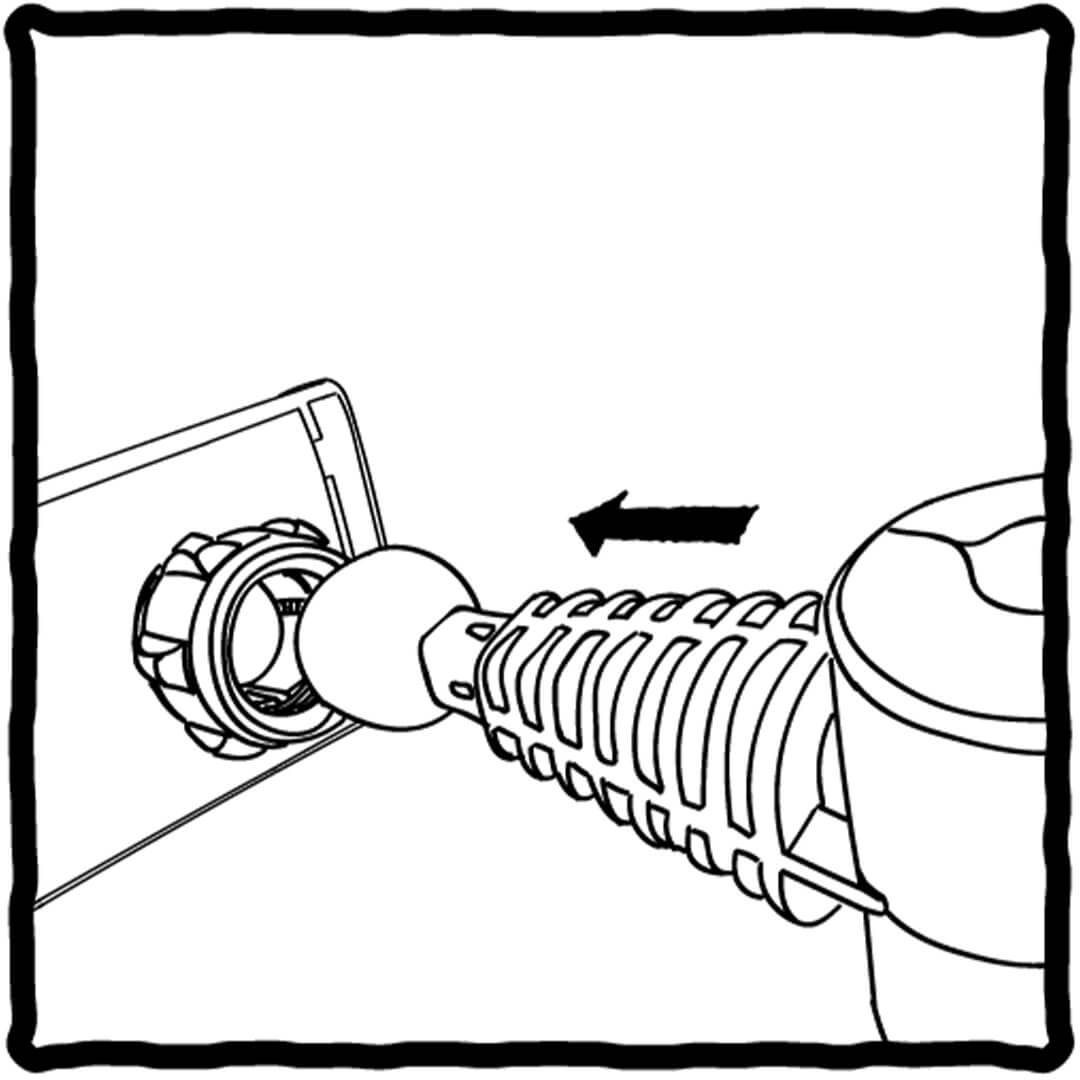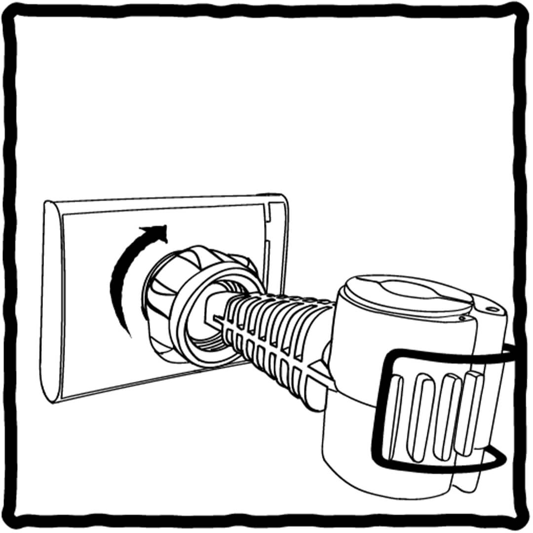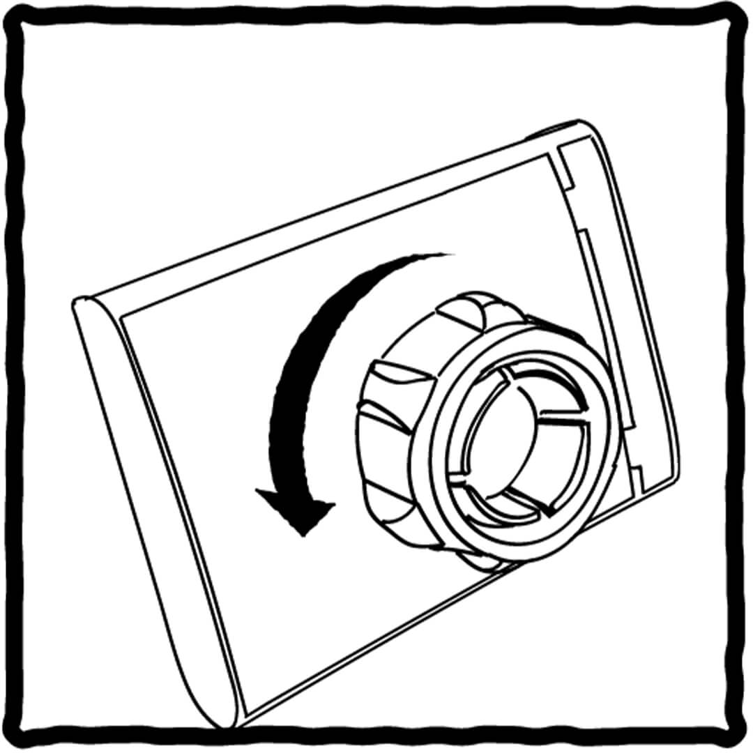 Draai naar recht om de klem te bevestigen aan de houder