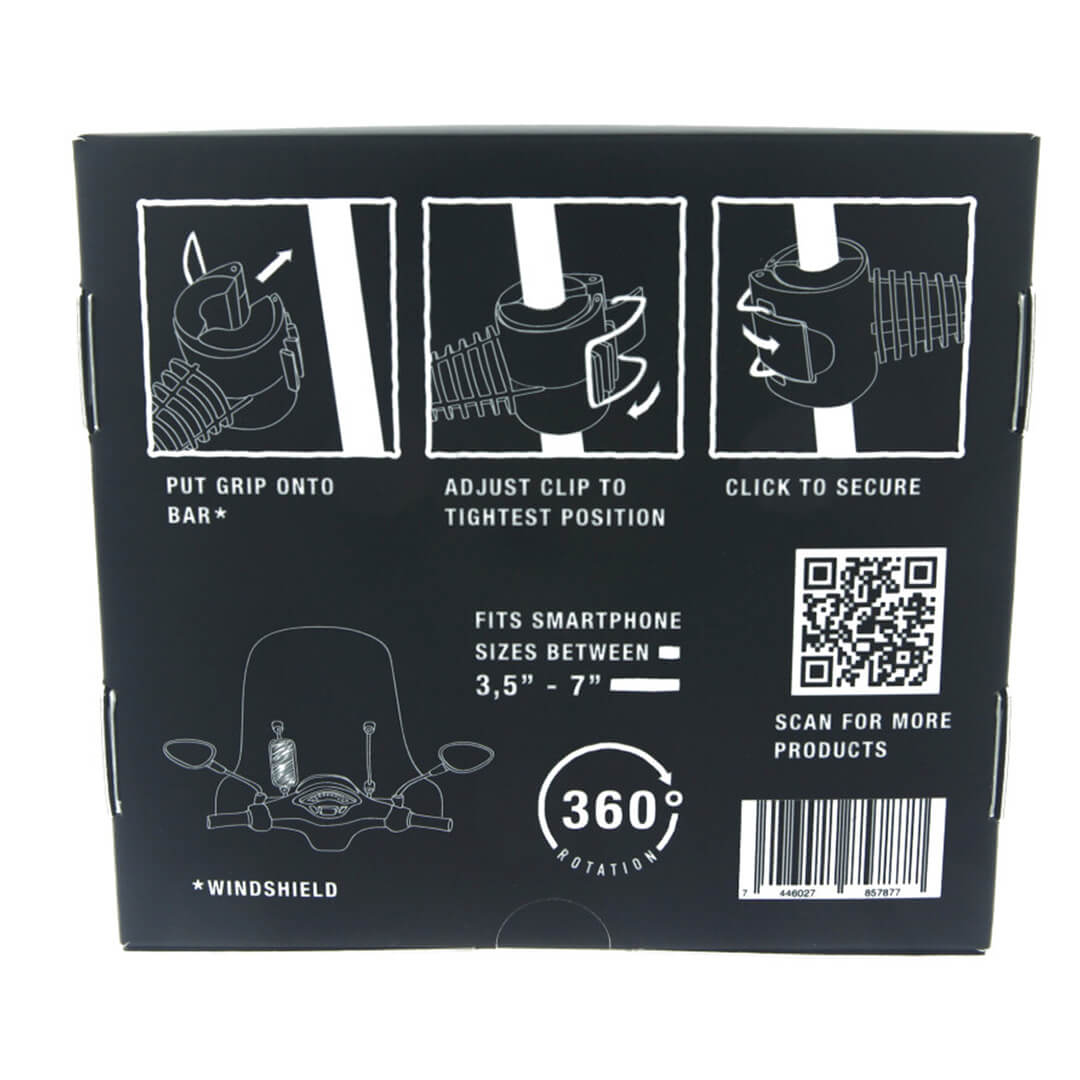 De houder is door middel van een klem makkelijk te bevestigen op het windscherm.