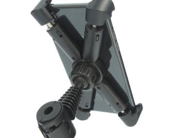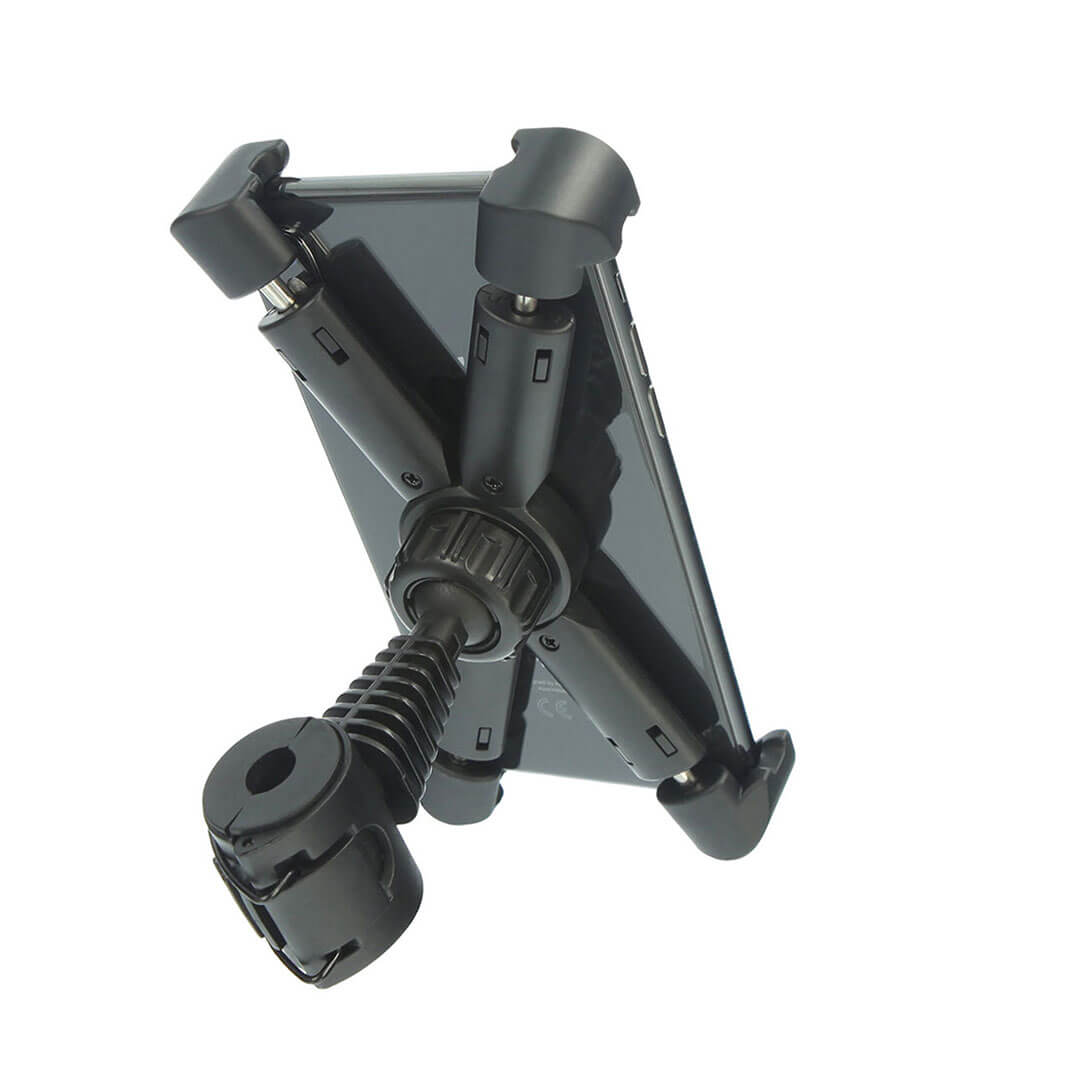 De klem kan op meerdere standen stevig vastgezet worden zodat de houder goed en veilig op zijn plek blijft zitten.