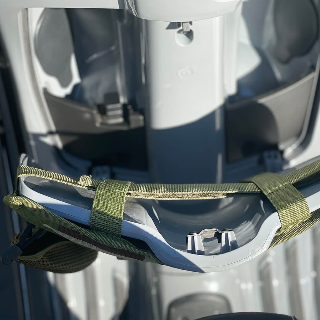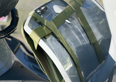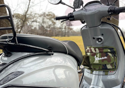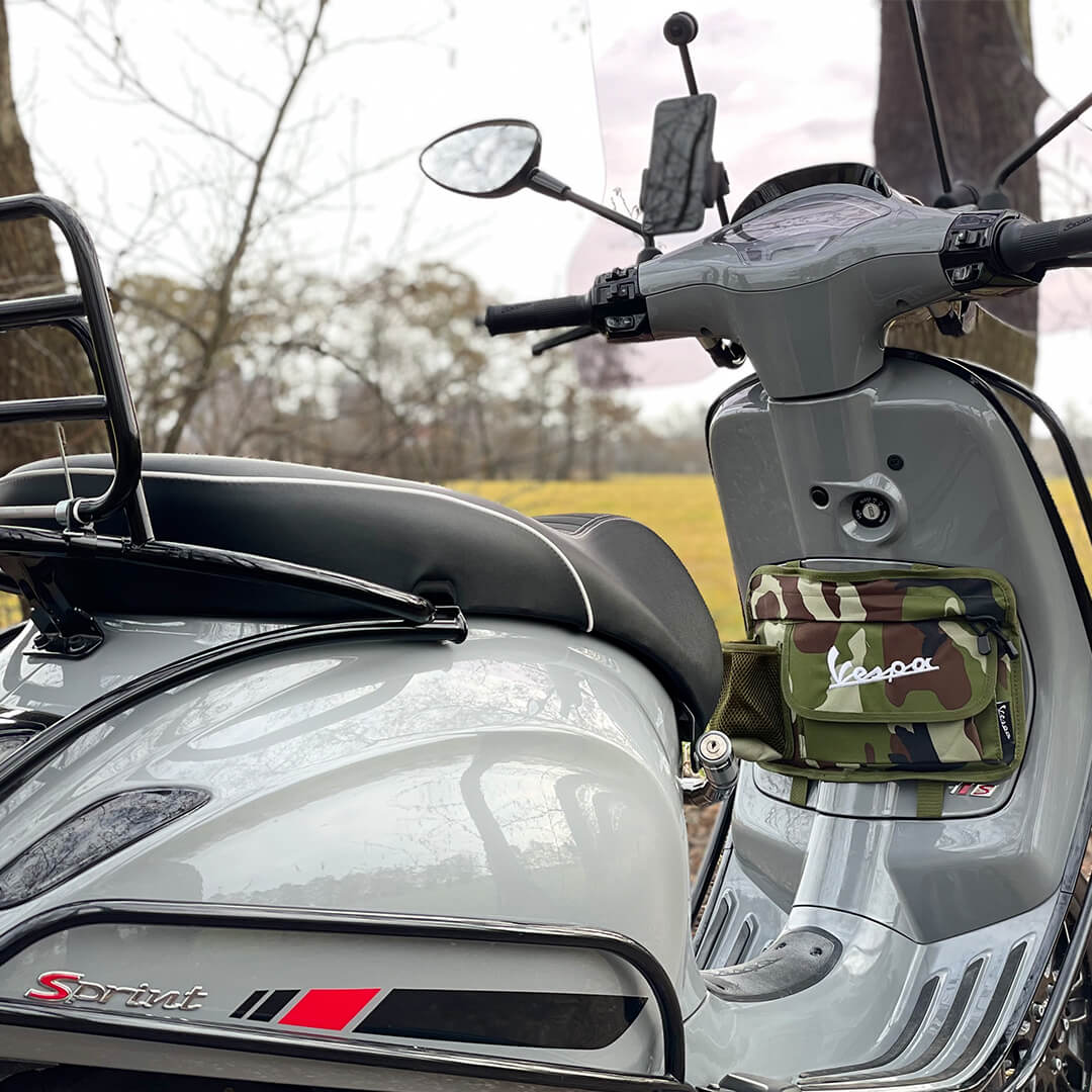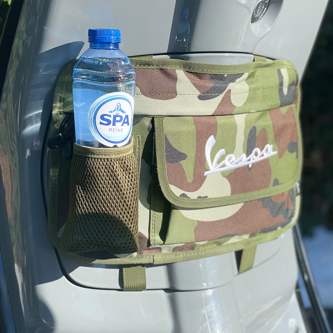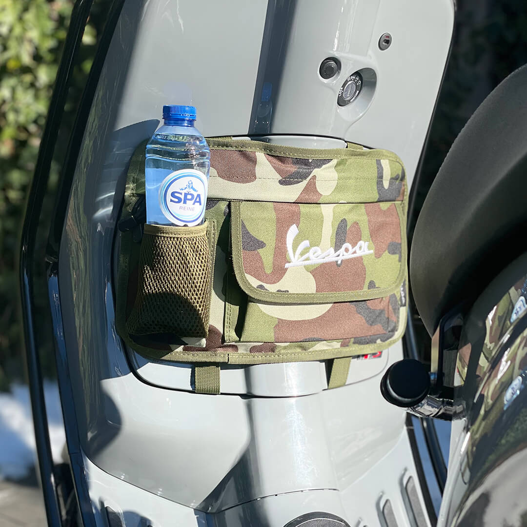 De tas bevestig je eenvoudig achter de klep van je scooter door middel van klittenband.